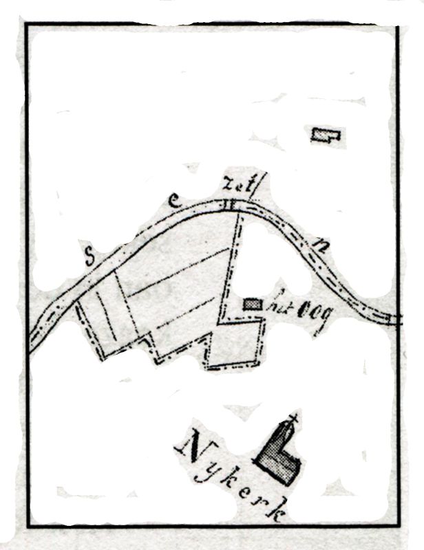 Tot voor 20 jaar kon je het Zet op drie manieren bereiken: vanaf de boerderij waar nu Breteler woont (op het kaartje rechtsboven), via de Jagyn, een landweggetje ongeveer vanaf de opslag bij Bollingwier en vanaf de Grienewei/Ald Tún in het verlengde van De Buorren. Om eens te kijken of het Zet er nog steeds is, heb ik geprobeerd het Zet via de ingang Griene Wei te bereiken en wat blijkt? Een (kleine) sloot verhindert de toegang, datzelfde geldt de oude toegang vanaf het Ald Each. Met een sprong is die sloot te bedwingen en zo kon de foto van het zet gemaakt worden: het is er nog! Het wordt nog steeds door Nesser boeren gebruikt getuige de brede ijzeren rijplaten die de balken versterken. Het landweggetje Jagyn is ook verdwenen, net als de oude terp (vlakgeschoven) van ’t Oogh, tot 1832 de pastorieplaats van Easternijtsjerk.