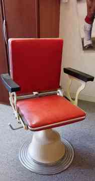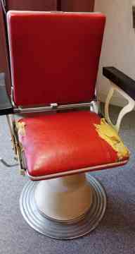 Intussen heb ik mijn derde kopje koffie al op en wordt het tijd om naar huis te gaan. Als Van der Vliet mij door de winkel naar buiten laat, kijk ik nog even naar de kappersstoel met de zitplaats van rode skai. Wat zullen daar veel Nijtsjerksters op hebben gezeten. Als die stoel eens kon praten, wat zouden er dan een sterke verhalen te horen zijn, wat zou die stoel te vertellen hebben, nog meer dan de kapper zelf.