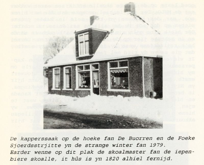 Ik was twee jaar in Ternaard, toen ik ischias kreeg. Dat betekende in die tijd liggen. Zes weken in bed thuis in Easterein. Daarna ben ik naar een kapper in Drylst gegaan. Daar was ook een damessalon bij en in die tijd kwam het permanenten op. Dat was iets nieuws en van kapper Schumacher, eerder dè zaak in Ljouwert, werd verteld dat hij moest uitleggen wat permanent betekende, dan zei hij: “dat blijft eeuwig”. Nou was dat in die tijd ook zo met permanent. Het haar werd gekookt, gebakken en gebraden! Het werd er met elektrische stroom in gedaan. Sommige vrouwen hadden weleens de schroeiplekken op de huid, anderen kregen bijna rood haar, zo’n “permanent” kwam het erin.