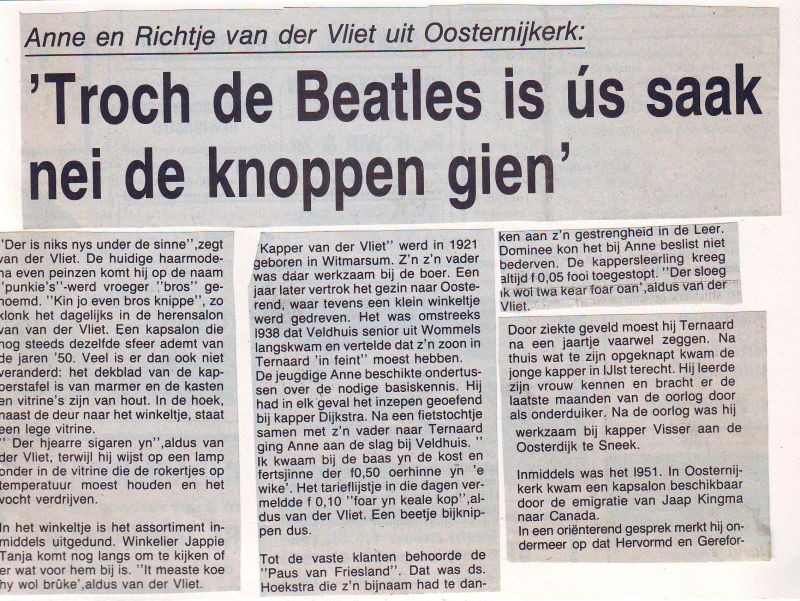 Na de oorlog emigreerde kapper Jacob Kingma met zijn gezin naar Canada en kwam er een plaatsje vrij voor kappersknecht Anne van der Vliet. In 1951 nam hij de zaak over en tot 1972 bleef de zaak geheel intact, aangevuld met een winkel met ‘tabaksvergunning’. Van der Vliet werkte daarna gedeeltelijk door in de eigen kapperszaak, uitsluitend heren en geen dames, en gedeeltelijk bij Oostergo bedrijven en later als eerste parkeerwacht van de gemeente Dokkum.
