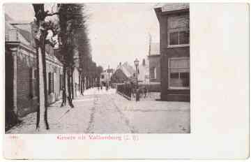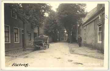 De Broekweg vanaf de Hoofdstraat gezien. De man rechts is Van Rij, een grindhand