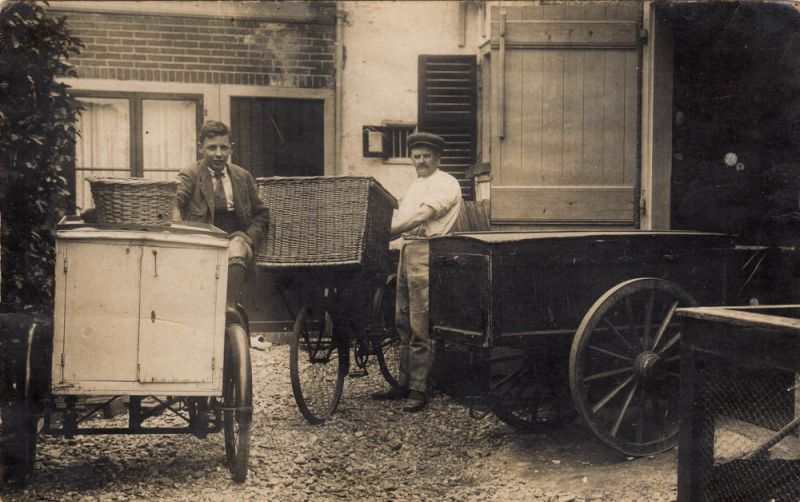 Dit is een mooi oud plaatje van bakkerij Meurs, waar pa IJsbrand Meurs samen met