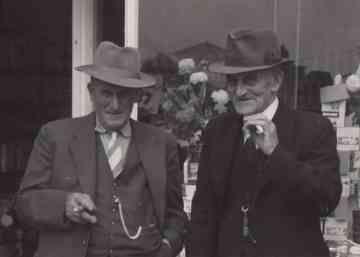 Rechts Piet van Dijk daarnaast Mien Bol.voor de winkel van Jacob bol,