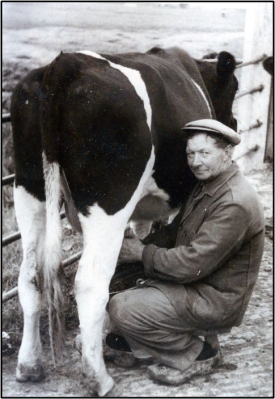 Het werk begon om half vijf 's ochtends met het melken van de vier koeien, later hadden we ook wel eens zes. Omdat ik zo jong was, kon ik nog niet eens de emmer met melk in de bus legen, dat was te zwaar. Daarom deed heit dit. Na het melken kregen we een kop thee en gingen daarna naar het land. Als het bloemkooltijd was, begonnen we om drie uur: we sneden de kolen die klaar waren en vouwden de bladeren van de andere kool eroverheen. De bloemkolen kwamen in een bak en werden naar het eind van ‘t land gesjouwd. Daar maakten wij ze klaar voor de verkoop. Toen ik wat ouder was, ging ik soms alleen melken, terwijl heit het werk met de bloemkool afmaakte.