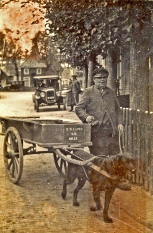 Pake Douwe Kuiper woonde in Peazens in de Hûnestege. Ik weet niet of die naam van pake's honden komt, maar pake deed al het werk met zijn honden, hij had er zeker vier stuks. Hij gebruikte ze voor zijn werk op het land, maar hij had ze ook voor de hondenkar met melkbussen, omdat hij ook melkrijder was bij de zuivelfabriek in Eanjum.