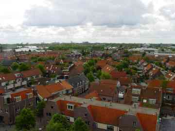 Zicht op het dorp vanuit het zuidwesten met op de achtergrond de Oude Rijn en he