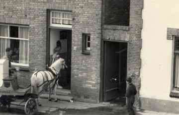 Cees Ouwersloot, de melkboer aan het venten in de Hoofdstraat. Hier bij de wonin