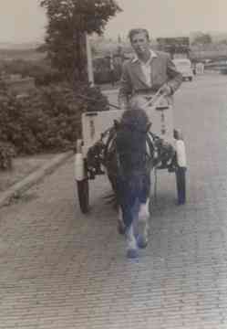 Kees Ouwersloot hier op de bok van een klein paardenkarretje. Is dit (één van