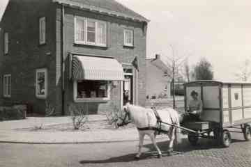 (1) Een mooi plaatje van de paard en wagen vóór de recent aangeschafte winkel.