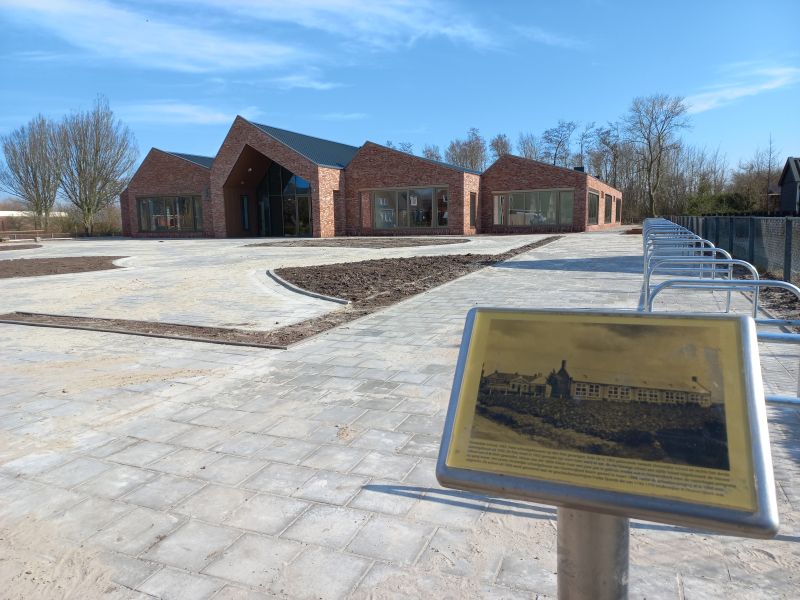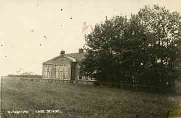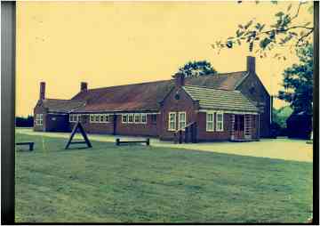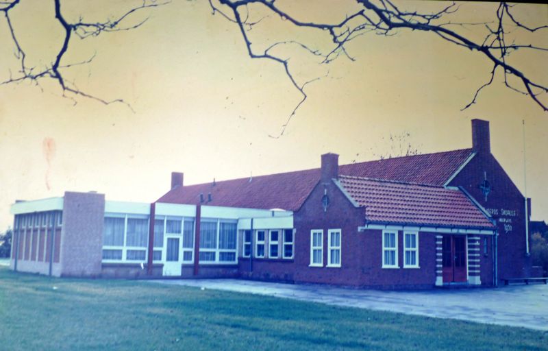 Bij de foto: Links het schoolgebouw uit 1902, rechts de opvolger uit 1950, foto 1953.