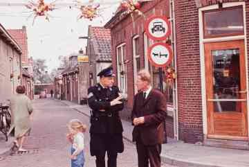 Hier staat onze lokale 'koddenbeier in functie' agent Dorrestijn druk in gesprek
