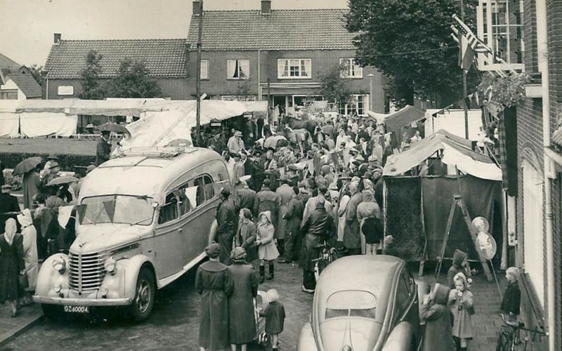 Tussen de marktkramen tijdens de paardenmarkt in 1955 stond een kraam ten behoev