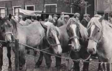 Paardenmarkt op het veldje naast de bakkerij van Meurs.