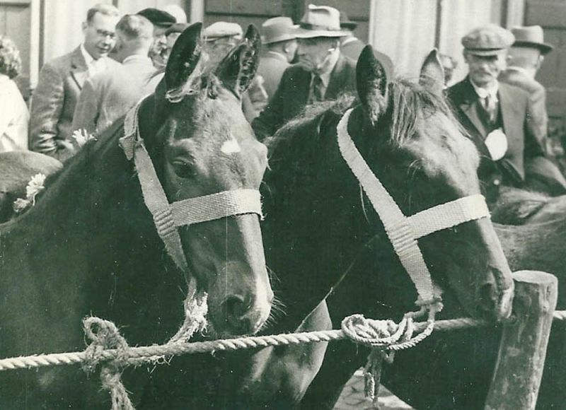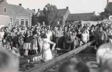 Feestelijkheden op het Dorpsplein tijdens de Paardenmarkt. Op de achtergrond het