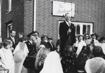 Agent Dorresteijn en burg van der Have, met op de achtergrond de Bierbengel.