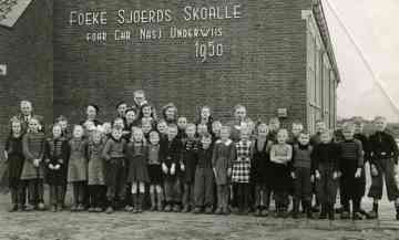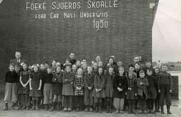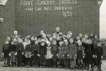 Personeel en leerlingen van de Foeke Sjoerds Skoalle, 1951