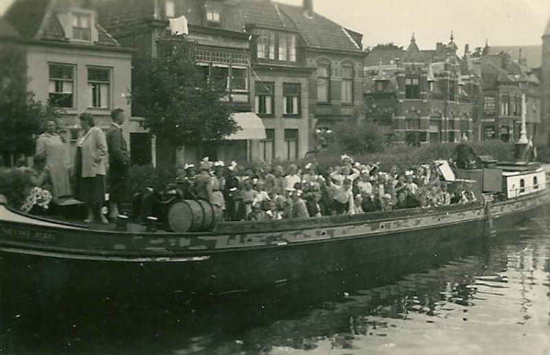 Schoolreisje. Met het vrachtschip van K.Postmus naar Rijswijk voor een bezoek aa