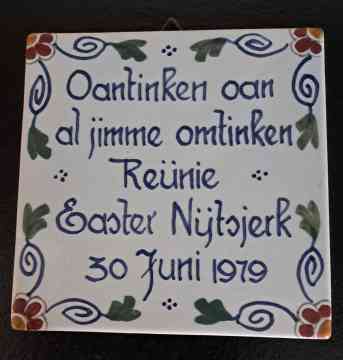 De eerste dorpsreünie van Easternijtsjerk werd tijdens de dorpsfeesten van 1979 gehouden. De Dokkumer en Kollumer Courant schreven er enthousiast over. Hierbij enkele citaten: ‘Van heinde en ver zijn ze gekomen, de Ald-Nijtsjerksters, geboren en getogen of een groot deel van hun leven doorgebracht hebbend in Oosternijkerk of Bollingawier. Zij gaven daarmee gestalte aan wat de dichter Anne Jousma eens schreef over ‘it âlde doarp’:   ’t Doarp fan myn bernetiid leit bidutsen ûnder de spinreagenfluezen fan de jierren De grize foarmen skimerje fan fierren Mei lijen ha’k de webben stikken lutsen’   ‘Handen werden er geschud, mensen keken elkaar eerst onzeker aan, namen een afwachtende houding aan. Maar dan ineens de blijdschap van de herkenning.’ ‘Ik bin Gert en hy is Theunis; och heden ja, ik koe jim froeger ek al net út elkoar hâlde.’ Tijdens deze reünie werd er ook een boekwerkje gepresenteerd over het dorp: ‘Een geschiedenis van Oosternijkerk’ waarvan er 850 exemplaren hun weg vonden naar dorpsgenoten en reünisten. Twaalf jaar later werd in 1991 de tweede dorpsreünie gehouden en in 2012 volgde een derde. Toen de christelijke school 150 jaar bestond werd er in 2018 nog een keer een reünie gehouden, die keer meer toegespitst op de school uiteraard.