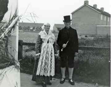 Voor veel oudere Easternijtsjerksters een bekend stel dorpsgenoten. Deze opname is gemaakt tijdens de dorpsfeesten van 1970. Veelal deden Riep en Jantsje daaraan mee in Fries costuum, zoals hier op de foto. Ze woonden sinds 1937 op de boerderij Ald Tún 16.