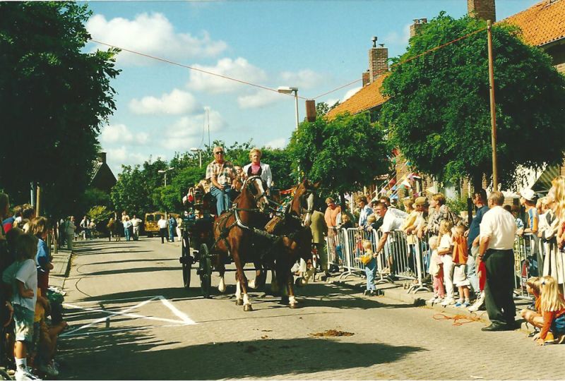 Ringrijden in de Marinus Poststraat tijdens de paardenmarkt.