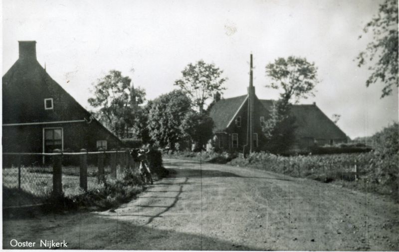 De oude slingerende weg richting Ropta en Mitselwier. Dat slingeren wijst op een hoge ouderdom, mogelijk dat er een oude zeedijk in is te herkennen. Zeker gezien de blokverkaveling ten noorden van deze weg is dat goed mogelijk. De twee woningen die op deze foto te zien zijn, zijn jarenlang bewoond door leden van de familie Jongeling. Het linker huis door Thijs Tjeerds en na hem zijn zoon Sijbe Thijses Jongeling. Sinds lange jaren woont er een Kooistra, eerst Harke en nu zijn zoon Marten Kooistra. Het huis midden op de foto is het voorste stuk van een gardeniersbedrijf, het hoge dak tussen het huis en de boom is het dwarsgeplaatste achterstuk waarin de stal en de schuur waren gevestigd. Het laatst woonde Dirkje Heeringa-Jongeling er, dochter van Ype Jacobs Heeringa (die er ook een fouragehandel dreef) en getrouwd met Tjeerd Sybes Jongeling, voordat zij naar Doktersfiif verhuisde. De woning stond toen jarenlang leeg en verwaarloosde totaal. In 1991 brak Rienk Terpstra alles af, het boerderijgedeelte werd niet meer opgebouwd, het voorhuis verrees in oude stijl. Later werd er een schilderswinkel bij gebouwd op de plek van de oude schuur. Het achterstuk van een boerderij geheel rechts op de foto is van Johannes en Jel Blom-Boersma (Jel was bij de jeugd beter bekend als ‘Beppe Aai’ omdat ze kippen hielden en jarenlang eieren verkochten) aan de Langgrousterwei 15, nu staat daar een keurige woning met daarachter een grote (voormalige timmer-)loods van de familie Solle.