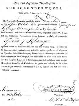 Yn 1842: T. Sybenga: Verstand: zeer goed Zedelijk: zeer goed