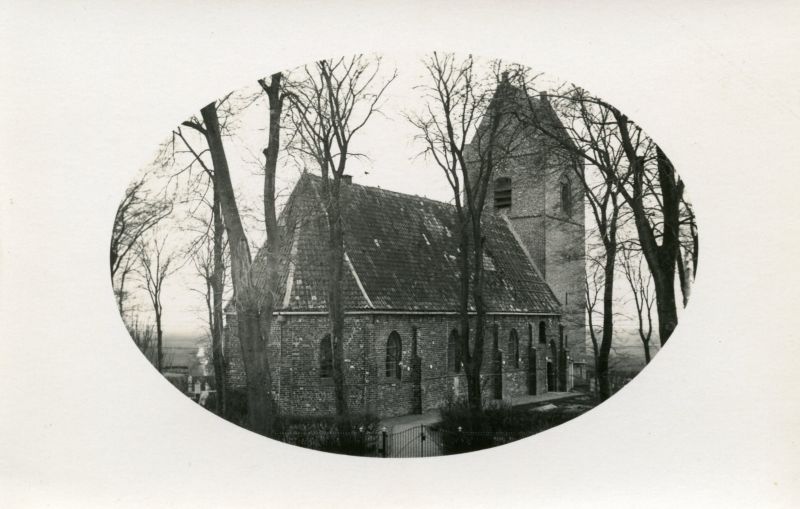 Dit is waarschijnlijk de oudst bekende foto van het hervormde kerkgebouw. De foto komt uit een particuliere verzameling en werd gemaakt vanaf het balkon van de tegenover liggende hervormde pastorie.