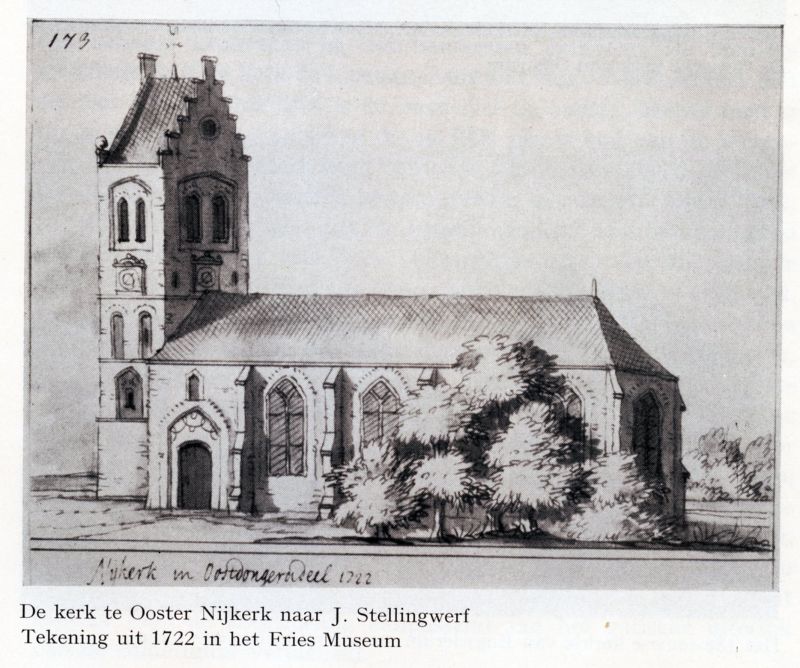 Wat de kerk van Easternijtsjerk betreft, lijkt het erop dat hij wat aan het fantaseren is geslagen want aan zijn tekening van de toren mankeert nogal wat!