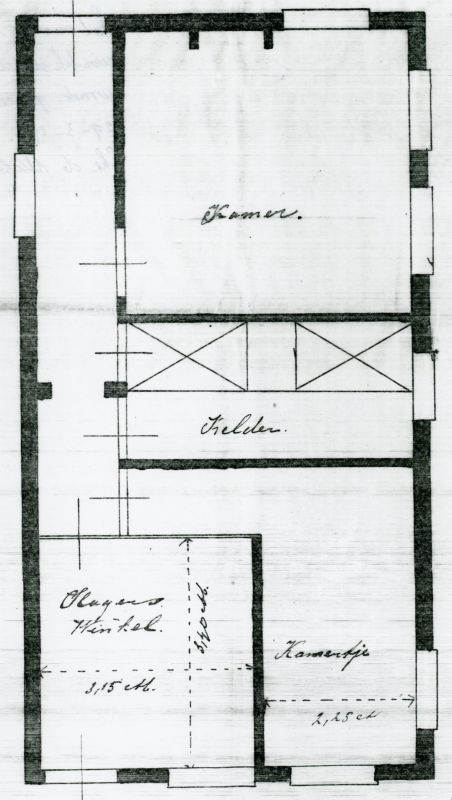 Zoals op de bouwtekening is te zien, was destijds de deur aan de linkerkant van het pand.