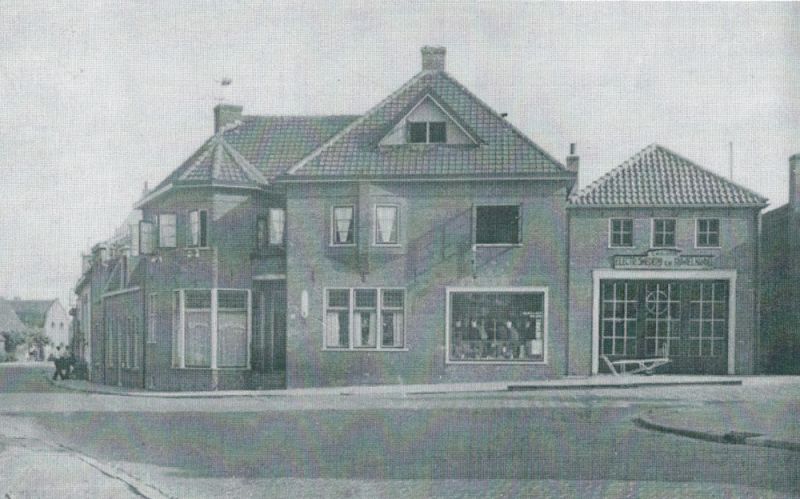 (2) Een mooie foto/ansichtkaart op de gevel van fa. van Stijn. Rechts de smederi