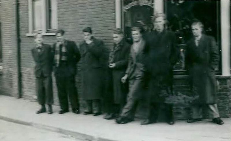 Valkenburgse hangjongeren voor de winkel van van Stijn aan de Hoofdstraat hoek B