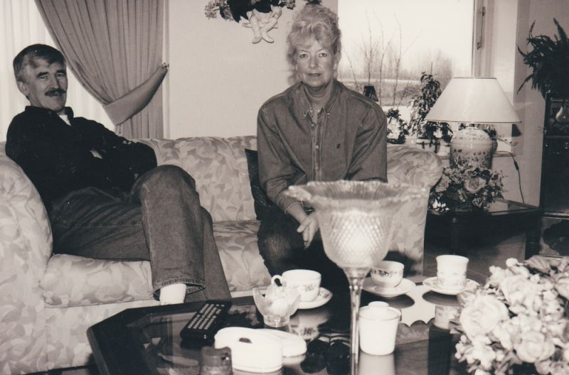 Frans van der Krogt met vrouw thuis zittend aan een bakje koffie. Frans runde