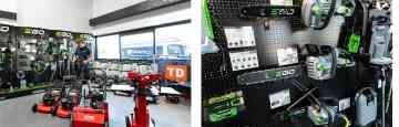 Er is een mooi assortiment gereedschap van diverse merken, machines van hoge kwaliteit: zoals EGO Powerplus accu tools, Stiga, SCAG, Grassmower, GTM professional en Waterkracht.