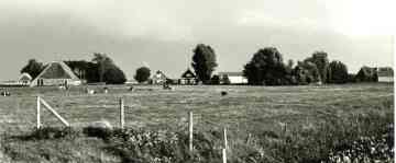 Twee bijzondere foto’s van de Langgrousterwei, in de tijd dat er nog geen kleuterschool (1959), geen dorpshuis De Terp (1965), geen sportvelden (1973), geen huizen aan de Doktersfiif (1974) en geen huizen aan de noordkant van De Terp (1990) waren. Op de eerste foto zijn de achterkanten van de woningwetwoningen uit 1919-1920 links goed te zien. Het waren vier blokjes van twee woningen, met aan de achterkant een door beide gezinnen gebruikt hok. Op de voorgrond een weiland waarop de koeien rustig grazen. Dit moet de bekende Doktersfiif geweest zijn waar eens het paard van de dokter graasde.