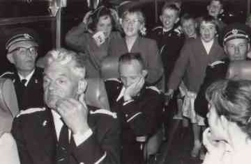 Van links naar rechts: buschauffeur, Bart Imthorn, chauffeur?, Anneke Glasbergen