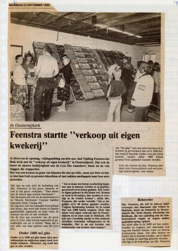 1980, Tjalling Feenstra start "verkoop uit eigen kwekerij"