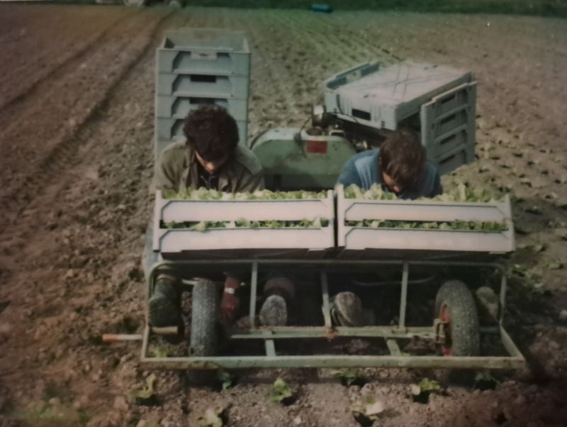 1982, Siebe Jansen en Roel Sikkema aan het sla planten