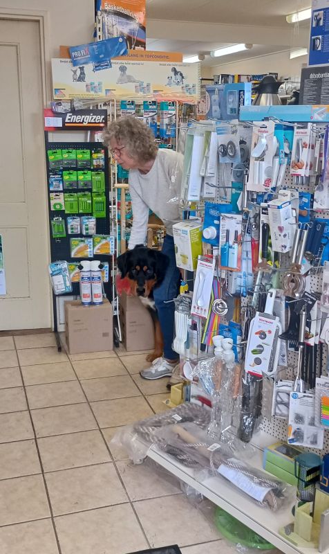 2024, interieur winkel met Saakje en waakhond