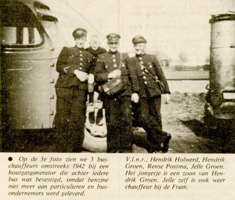 In de oorlog kwamen de fietsen bovenop en moest een gasgenerator achterop worden geplaatst die met antraciet en houtjes werd gestookt, het berkenhout moest eerst gekapt en naar de grasdrogerij in Driezum. Voor een rit Leeuwarden had men 3-4 zak nodig.