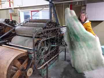 'Momenteel worden de machines schoongemaakt en gerestaureerd, zodra er even tijd voor is, dus we zijn er nog lang niet, ondanks hun leeftijd hebben ze na jaren stilstaan toch wel kinderziektes,' zegt ze lachend. Deze lijn geeft een regelmatige draad en die ziet er heel anders uit dan de ambachtelijke draden die op de spinlijn van 1918 gemaakt worden.