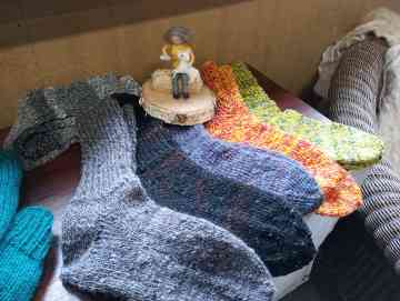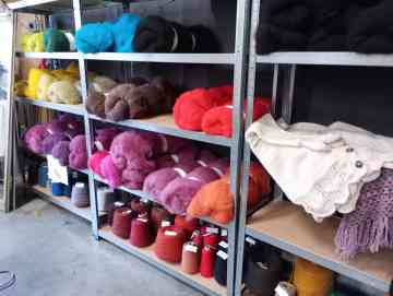 Er worden zelfs kaardvliezen voor schoenen en sloffen gemaakt. Van gesponnen wol worden mutsen, beenwarmers, truien, vesten, sjaals, omslagdoeken, polswarmers, etc. etc gemaakt. Deze worden bij de spinnerij op bestelling gemaakt. Enkele voorbeelden en pasmodellen zijn aanwezig.