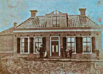 Het vreemde aan deze foto is dat het schoolgebouw dat achter de woning stond, helemaal niet te zien is. Volgens een bewoner van het schoolhuis was de school vanuit de woning via een gangetje toegankelijk: school en schoolhuis waren dus aan elkaar verbonden.
